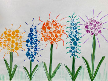 Bricolage printanier pour les enfants âgés de 4 à 8 ans. Les fleurs empreintes au doigt, une façon ludique de s’amuser!